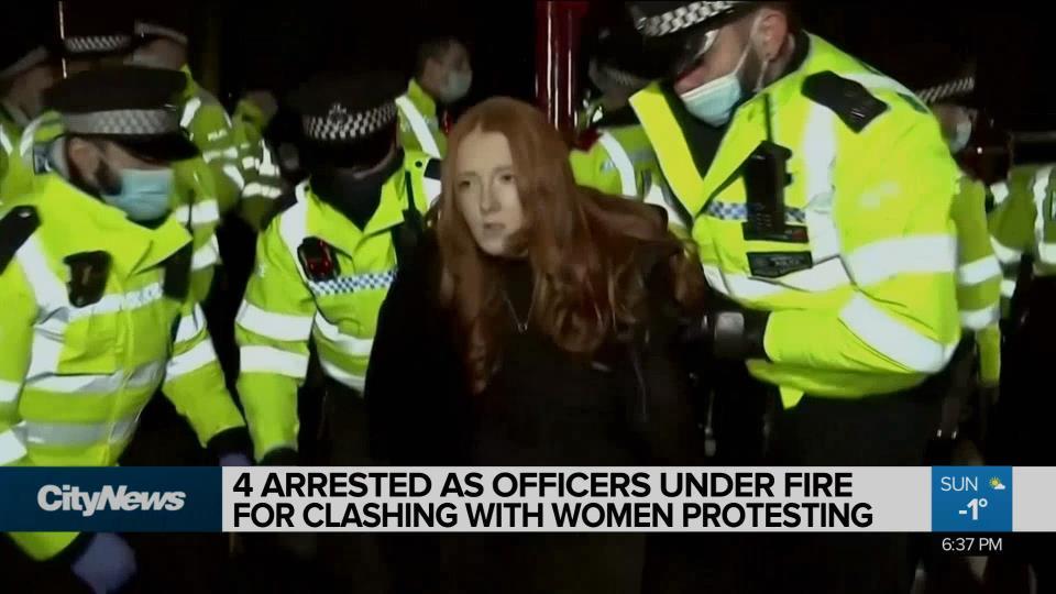 WATCH: https://toronto.citynews.ca/2021/03/14/london-police-under-pressure-over-clashes-at-womens-protest/